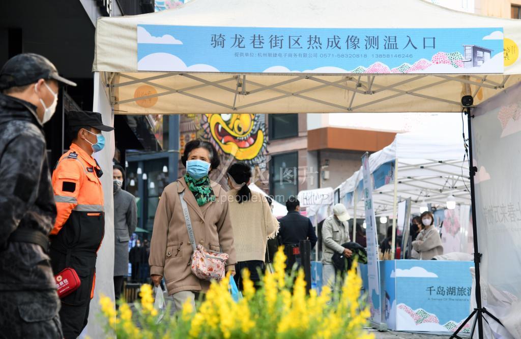 2020年3月18日,“湖上春来万物新”浙江杭州千岛湖春游春品推介季在骑龙巷慢生活街区启动,游客在景区参观购物。
