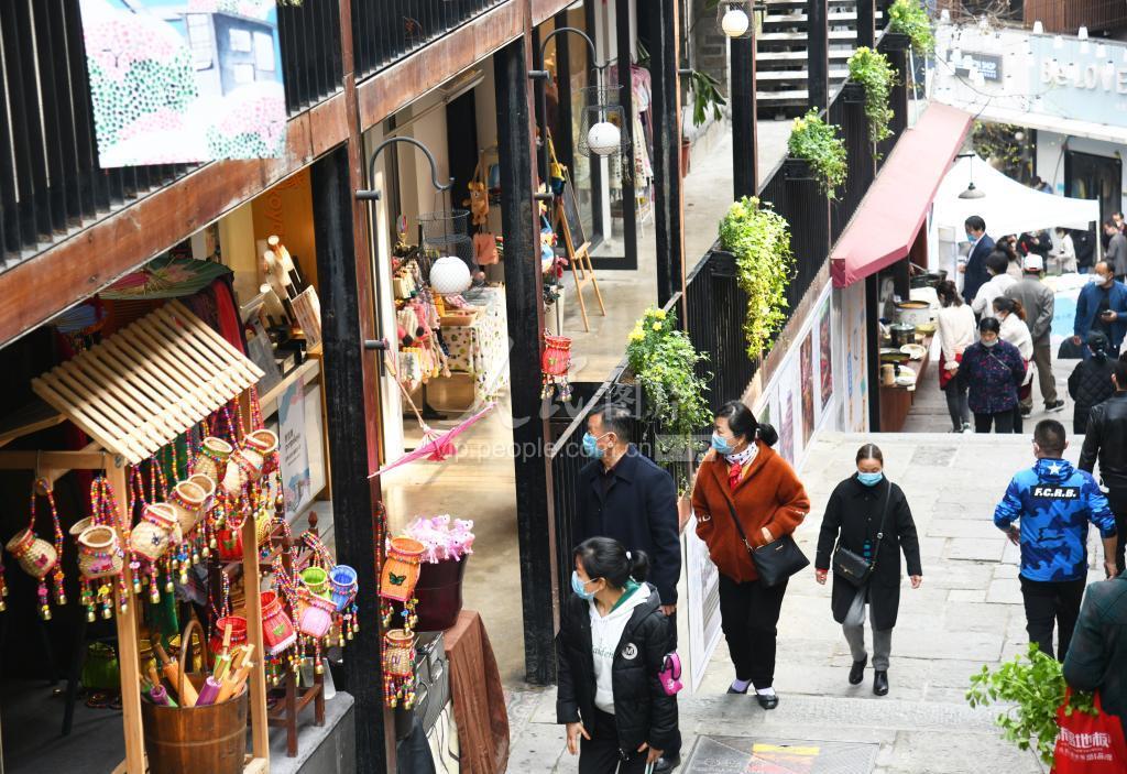 2020年3月18日,“湖上春来万物新”浙江杭州千岛湖春游春品推介季在骑龙巷慢生活街区启动,游客在景区参观购物。