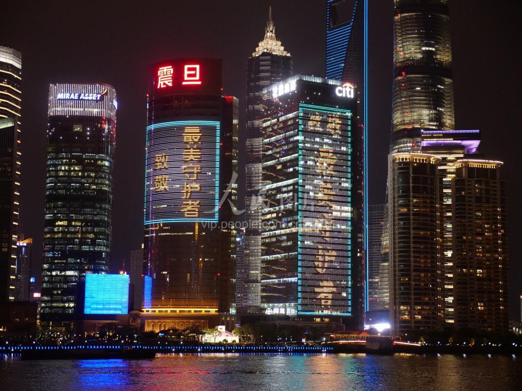2020年3月31日晚8点至9点,上海黄浦江两岸地标建筑、各区主要商圈大屏、外墙和出租车等全市公益广告阵地统一亮屏亮灯、集中刊播海报,向医护人员致敬。