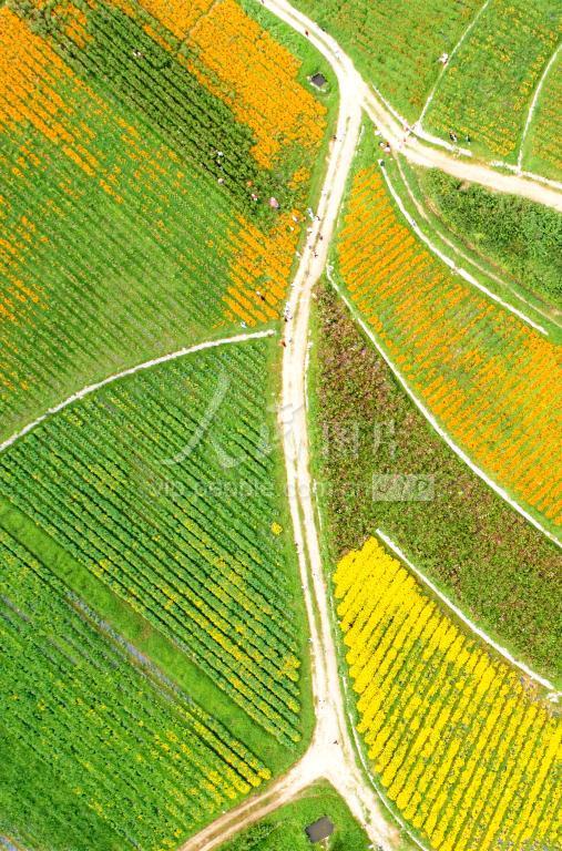 2020年8月12日,数百名游客来到三峡库区湖北省宜昌市秭归县高山乡村大金坪花海休闲纳凉,乐享暑期美好时光。近年来,该地采取植树植草、水源地保护、面源污染治理、环境整治等多种措施,对山区乡村进行生态修复,昔日的废弃矿山、荒山秃岭成为醉人的秀田花海,引众多游客前来休闲游览。