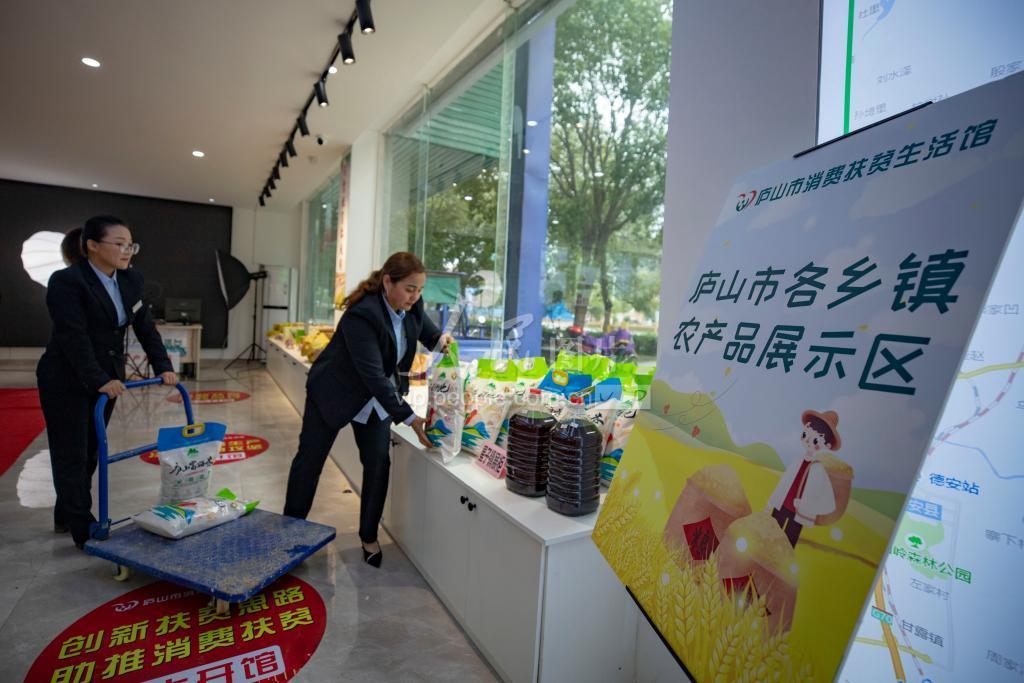 2020年10月16日,江西省庐山市消费扶贫生活馆正式运营,打通了当地消费扶贫“最后一公里”。 庐山市消费扶贫生活馆集中了当地扶贫产品名录中的92个产品,通过“线上+线下”“零售+团购+配送”和“实体展销+合作代销+基地生产”的销售运营模式,实现全市贫困户扶贫产品应销尽销,从而推动扶贫产业发展壮大,助力贫困群众增收致富。