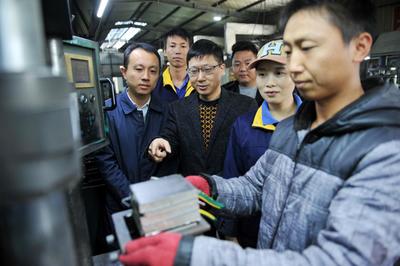 2020年11月22日,江西省鄱阳县“草根人才”、金刚石工具制作经理人胡新辉(左二)正在指导当地农民工加工金刚石工具技艺。 据了解,这是江西省上饶市鄱阳县在围绕产业扶贫,带动群众脱贫致富中,由县委组织部牵头,会同相关职能部门,实施“草根人才”素质提升工程,突出对“草根人才”的挖掘和培养,用活用好“草根人才”,发挥人才示范引领作用。目前,共培育出各类“草根人才”1000余人,深入田间地头和产业基地,手把手的进行现场指导,为当地群众及贫困户提供技术支撑,让成千上万群众受益。