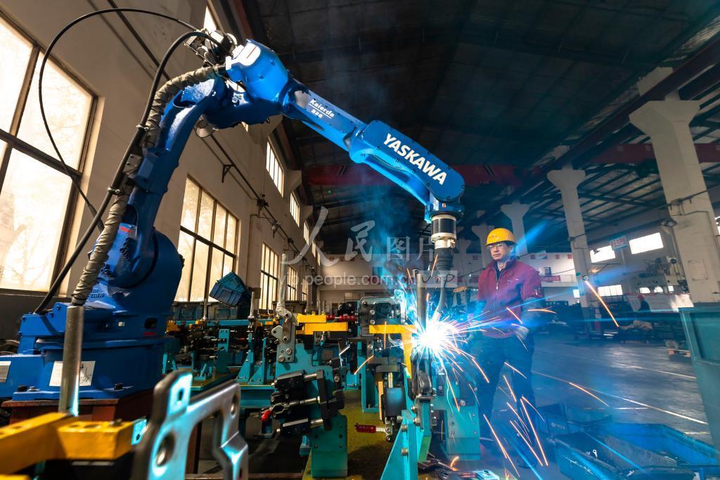 1月27日,江西庐山市新恒机械制造有限公司的车间内,机器人正在焊接生产汽车部件,传统制造业正向“智造”转变。