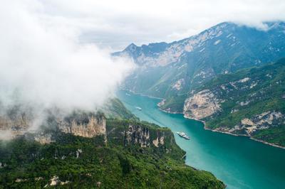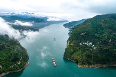 清明时节,长江三峡持续阴雨天气,西陵峡两岸高山峡谷云蒸雾绕、烟雨朦胧,船行其间,犹驶画中。