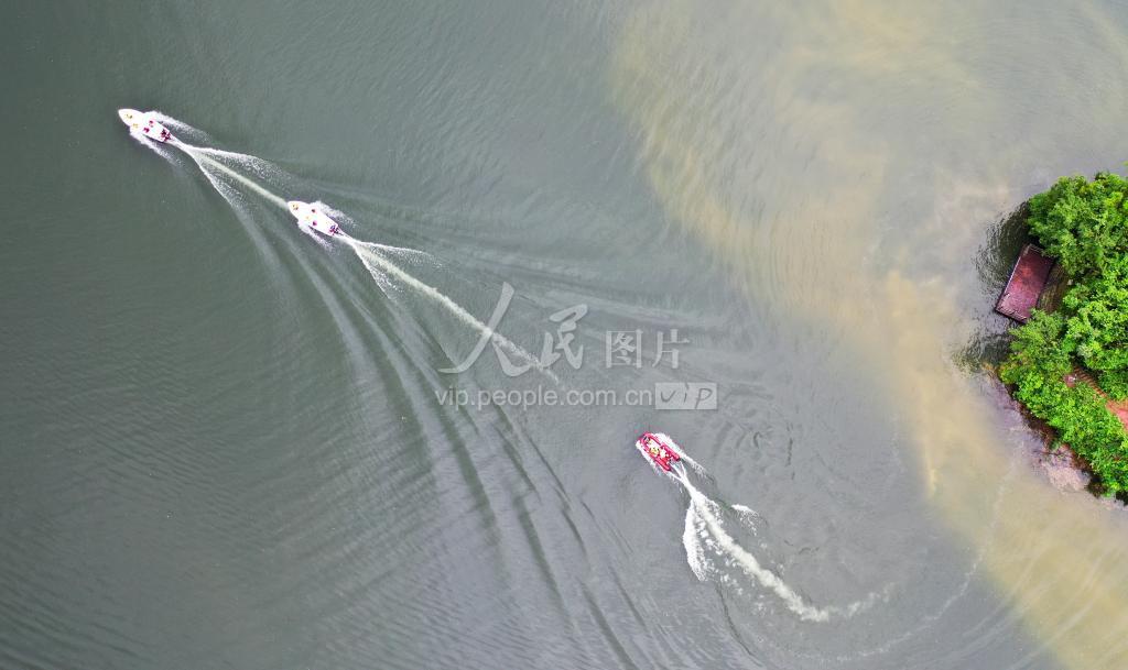2021年7月6日,四川省南充市蓬安县大深沟水库,救援人员在演练水上救援。