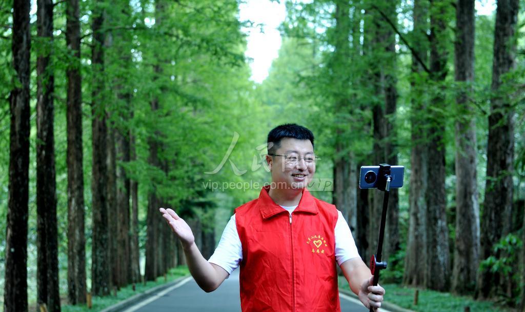2021年8月8日,江西省德兴市大茅山景区管委会党员干部正在通过手机网络直播的形式,现场推介国家4A级风景名胜区大茅山自然景区。
