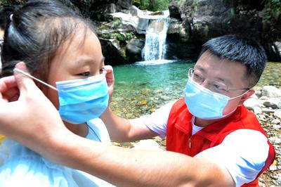 2021年8月8日,江西省德兴市大茅山风景名胜区党员干部正在景区入口,协助检票员做好游客进入景区前的防疫体温检测。 时下正是新冠疫情防疫关键时期,江西省德兴市大茅山风景名胜区在严把入口安全门的同时,及时组织党员干部放弃双休日时间,来到景区各个游客相对密集的景点,监督游客做好安全防疫措施,扫健康码、行程码、体温检测等,对忘了带口罩的游客提供免费药用专用口罩,确保游客在景区健康游览和休闲度假,深受广大游客的欢迎。