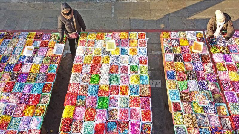 上传时间: 2022-01-19 15:22:51 图片说明: 2022年1月19日,市民在内蒙古自治区呼伦贝尔市扎兰屯市步行街选购糖果。