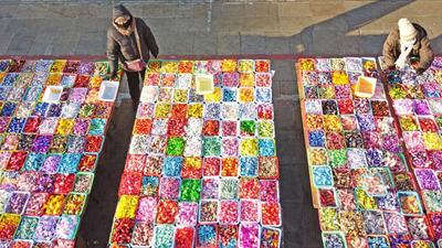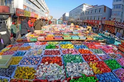 上传时间: 2022-01-19 15:22:51 图片说明: 2022年1月19日,市民在内蒙古自治区呼伦贝尔市扎兰屯市步行街选购糖果。