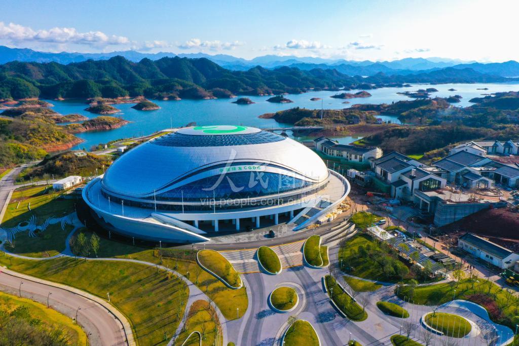 2022年3月7日,航拍浙江杭州亚运会淳安场地自行车场馆。