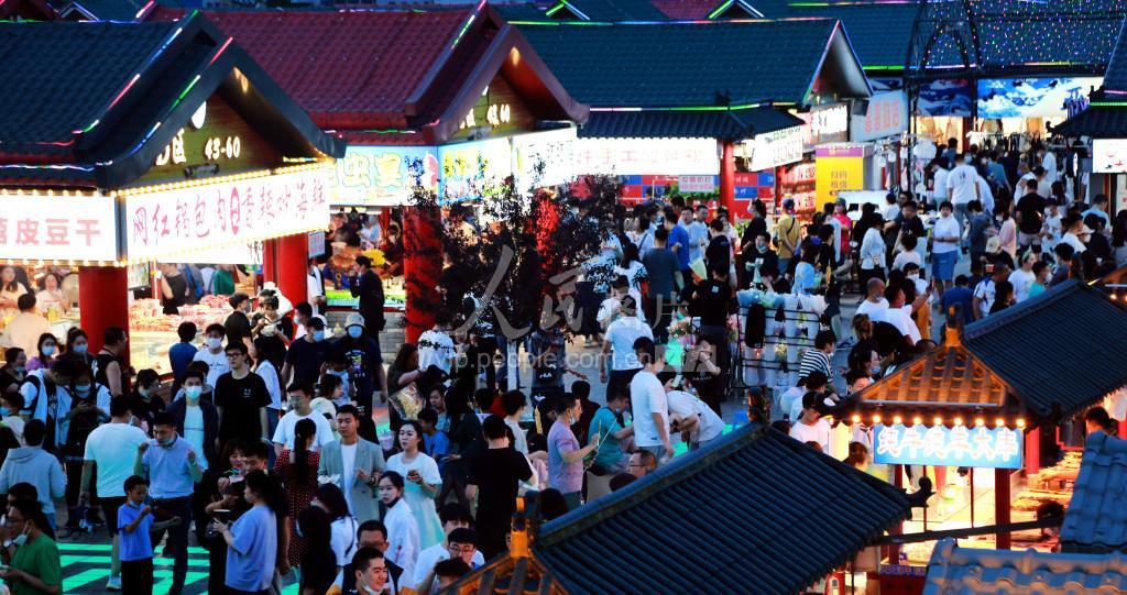 2022年6月11日,在辽宁沈阳塔湾兴顺夜市人头攒动,各美食摊位生意红火,烟火气十足。