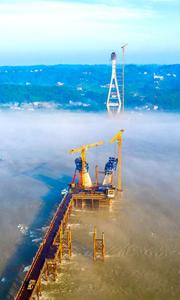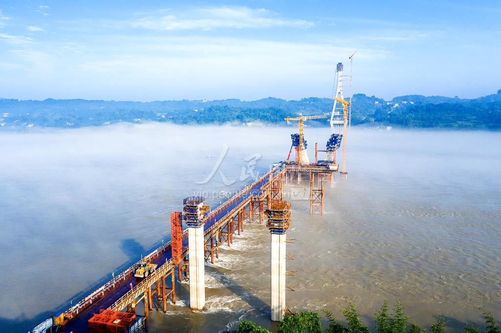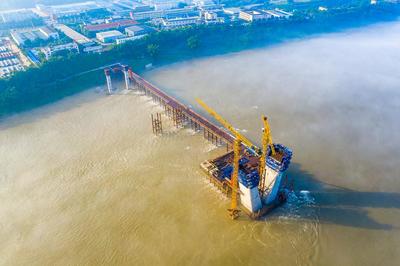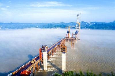 2022年6月14日,四川省泸州市合江县的榕山长江大桥项目建设现场,工人们正在大桥2号主墩及承台上施工作业。 泸州市榕山长江大桥南岸位于泸州市合江县榕山临港工业园区,北岸将与宜泸渝高速公路白米互通立交连接。