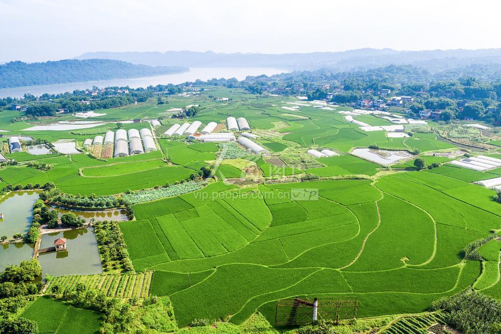 2022年6月14日,用无人机从高空俯瞰四川省泸州市合江县临港街道符阳村,绿茵茵的稻渔共育示范片里,水稻长势喜人,生机盎然。 近年来,该县通过打造水稻高产示范片,推动了巴蜀鱼米之乡建设,水稻播种面积达到52万亩,目前已处于孕穗阶段,各种粮大户和群众正积极加强夏季时节田间管理,确保今年又是一个丰收年。