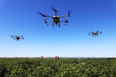 2022年7月7日,无人机手驾驶植保无人机在内蒙古自治区扎兰屯市成吉思汗镇天原中草药种植农民合作社苍术田间喷洒叶面肥。 今年,内蒙古自治区呼伦贝尔市扎兰屯市成吉思汗镇繁荣村天原中草药种植农民专业合作社在原有播种机、收割机等现代农机具基础上,引进植保无人机进行中草药管护施肥作业,成为高效精准地执行农业生产的新农具,助力乡村振兴。