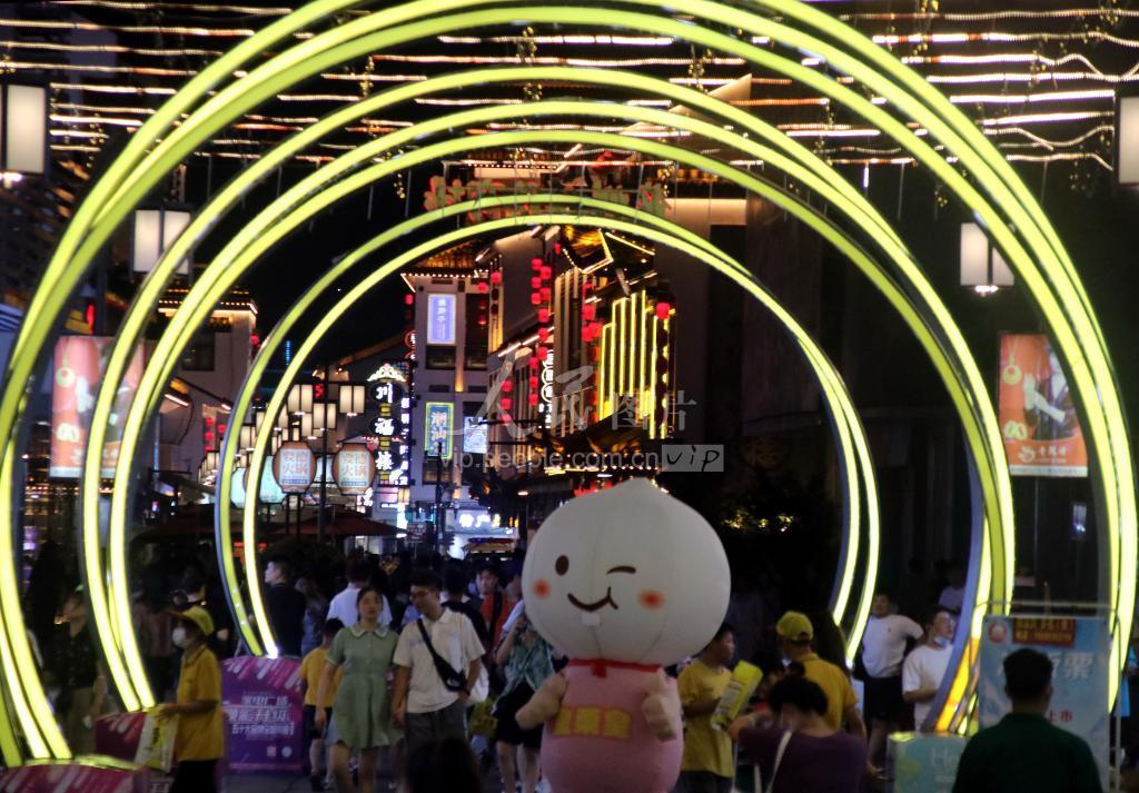 2022年8月15日晚,市民在江苏苏州观前街逛街购物,夜经济红火。
