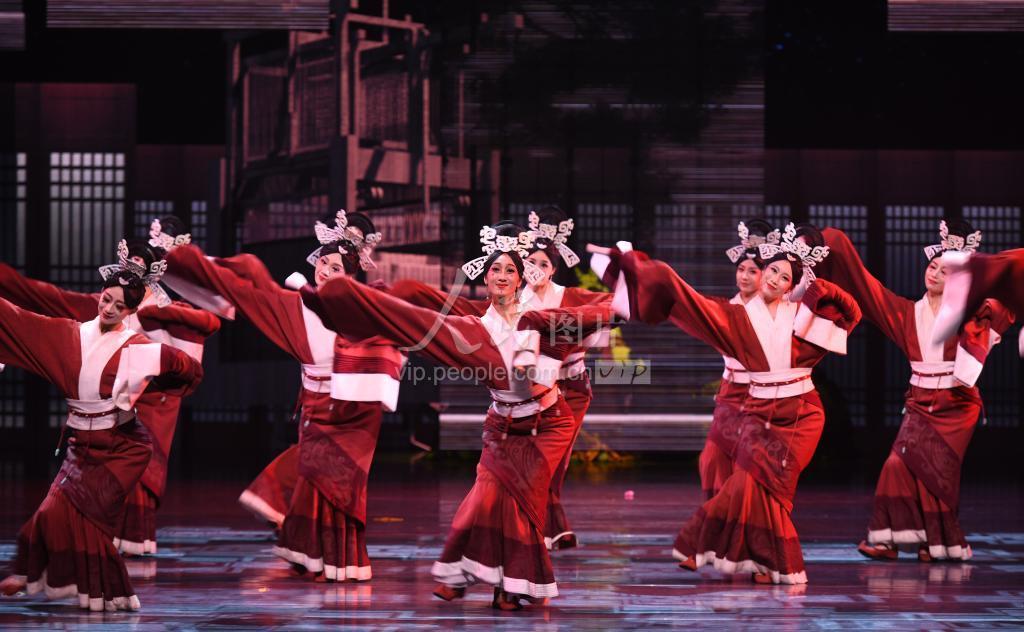 2022年8月24日晚,演员在安徽阜阳大剧院表演舞剧《五星出东方》。
