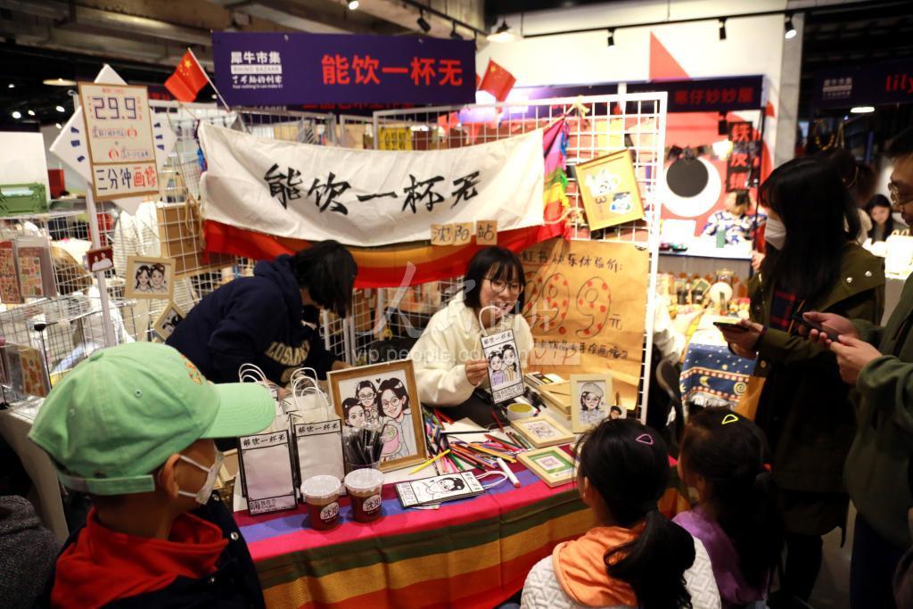 2022年10月3日,辽宁沈阳,市民在1905文化创意园举办的“犀牛市集”上参观选购文创产品。“犀牛市集”在国庆假期每天开放,内容上是集艺术展览、文化演出、文创商业于一体,市民可以在这里感受体验“热青年”的文化生活及参观选购各种新潮、复古等文创产品。