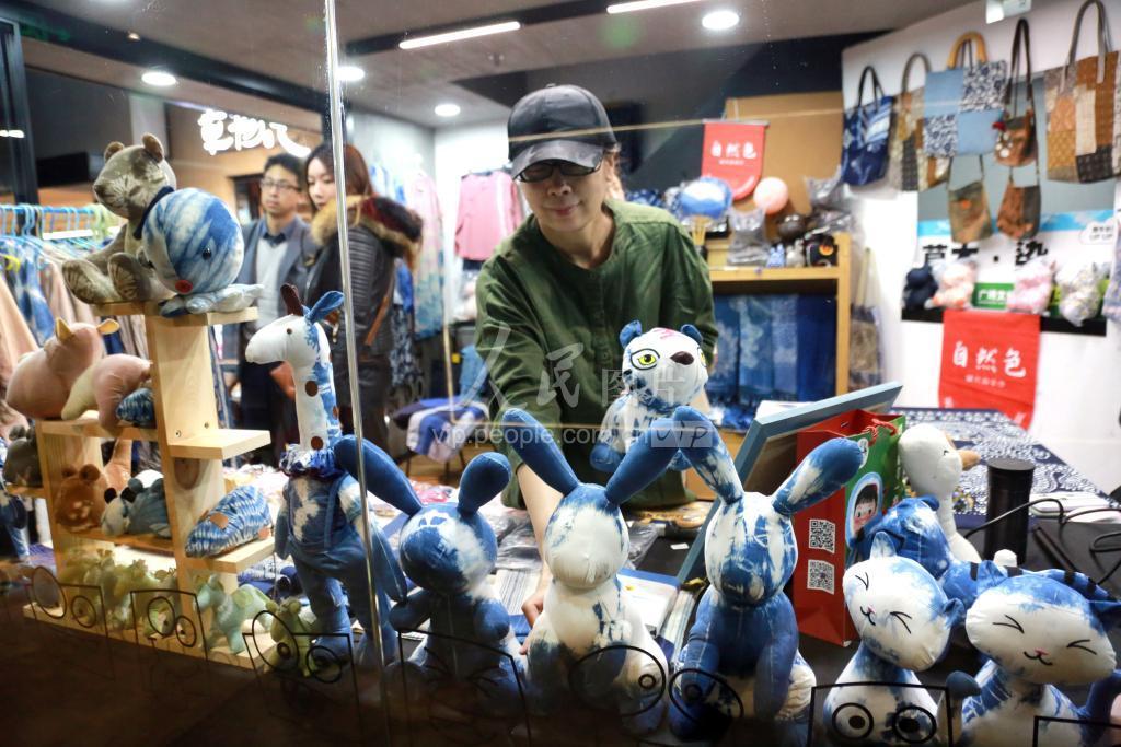 2022年10月3日,辽宁沈阳,市民在1905文化创意园举办的“犀牛市集”上参观选购文创产品。