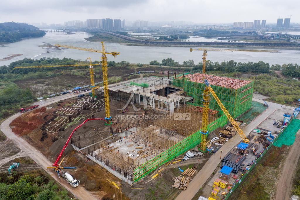 2022年10月28日,四川省眉山市彭山区岷江、府河汇流处,江口沉银博物馆项目正在抓紧施工。
