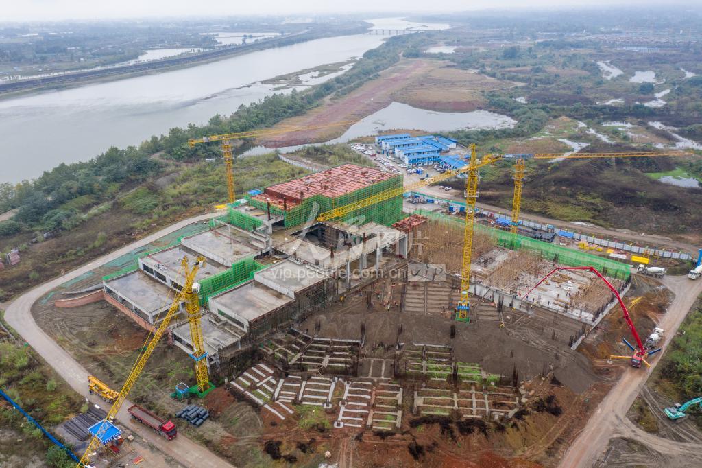 2022年10月28日,四川省眉山市彭山区岷江、府河汇流处,江口沉银博物馆项目正在抓紧施工。