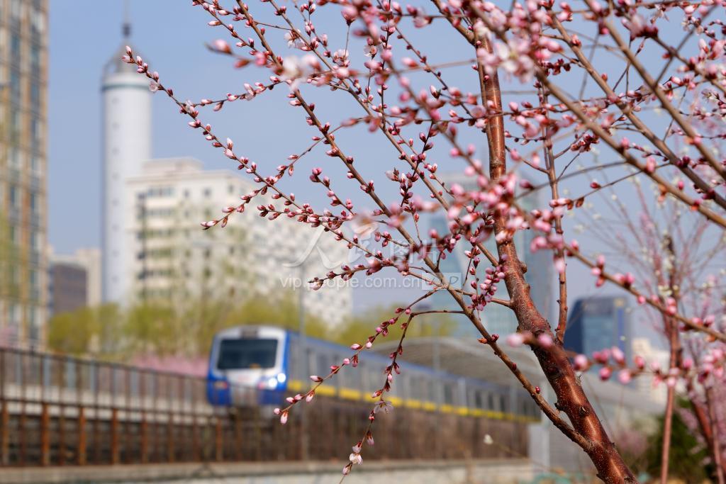 2023年3月9日,北京地铁13号线列车从海淀区新建成的京张铁路遗址公园内盛开的山桃花海边穿越,这趟开往春天的列车,成为京城一道靓丽的风景线,吸引市民前来打卡拍照。