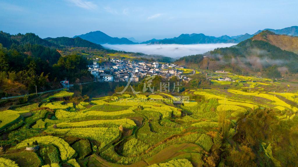 近日,安徽绩溪县家朋乡梅干岭梯田油菜花竞相绽放,漫山遍野的油菜花层层叠叠,油菜花若隐若现,如梦如幻,在飘渺弥漫的云雾映衬下,恰似一幅乡村春景图。
