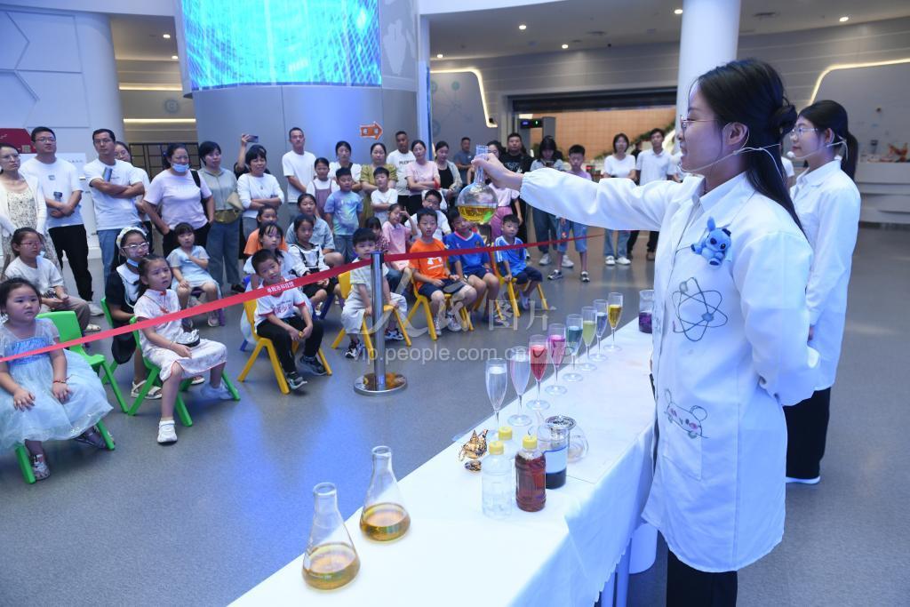 2023年9月17日,全国科普日,不少家长带着孩子来到安徽阜阳市科技馆参观,感受科技魅力。