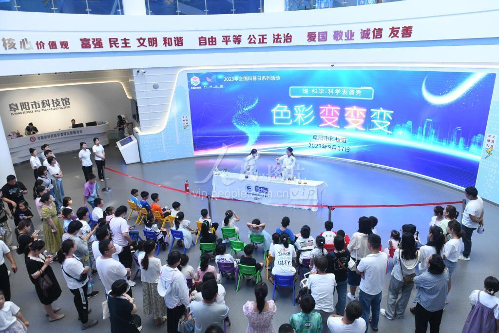 2023年9月17日,全国科普日,不少家长带着孩子来到安徽阜阳市科技馆参观,感受科技魅力。