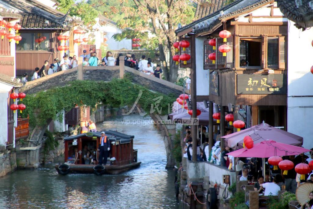 2023年10月5日是国庆假期第七天,长假接近尾声,江苏省苏州市山塘古街旅游热度不减,游客依然人流如织,人们抓住假期尾巴,尽享美好时光。