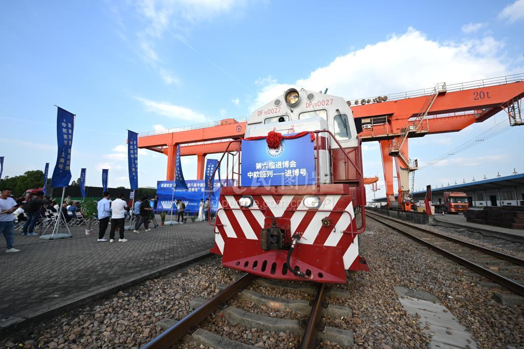 2023年10月11日,装载第六届中国国际进口博览会参展展品的首列“中欧班列-进博号”列车抵达上海闵行站。这是进博会参展展品连续第三年通过中欧班列直达上海。