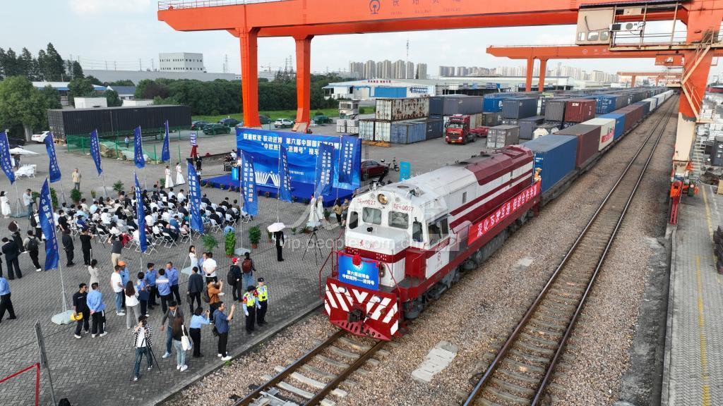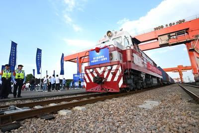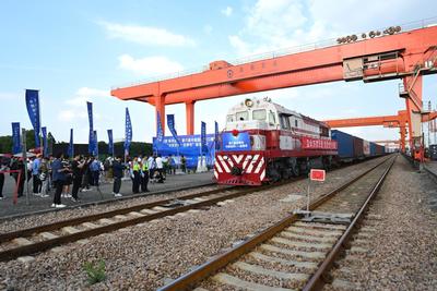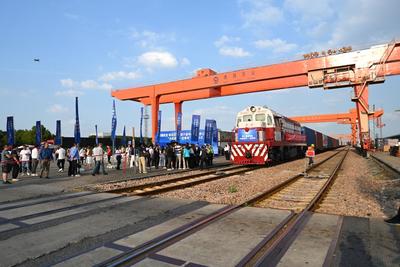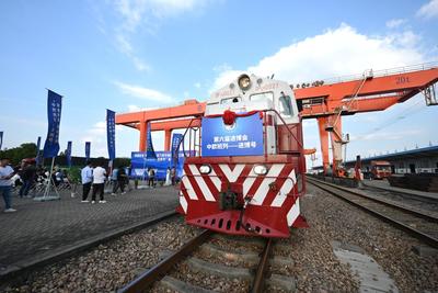 2023年10月11日,装载第六届中国国际进口博览会参展展品的首列“中欧班列-进博号”列车抵达上海闵行站。这是进博会参展展品连续第三年通过中欧班列直达上海。