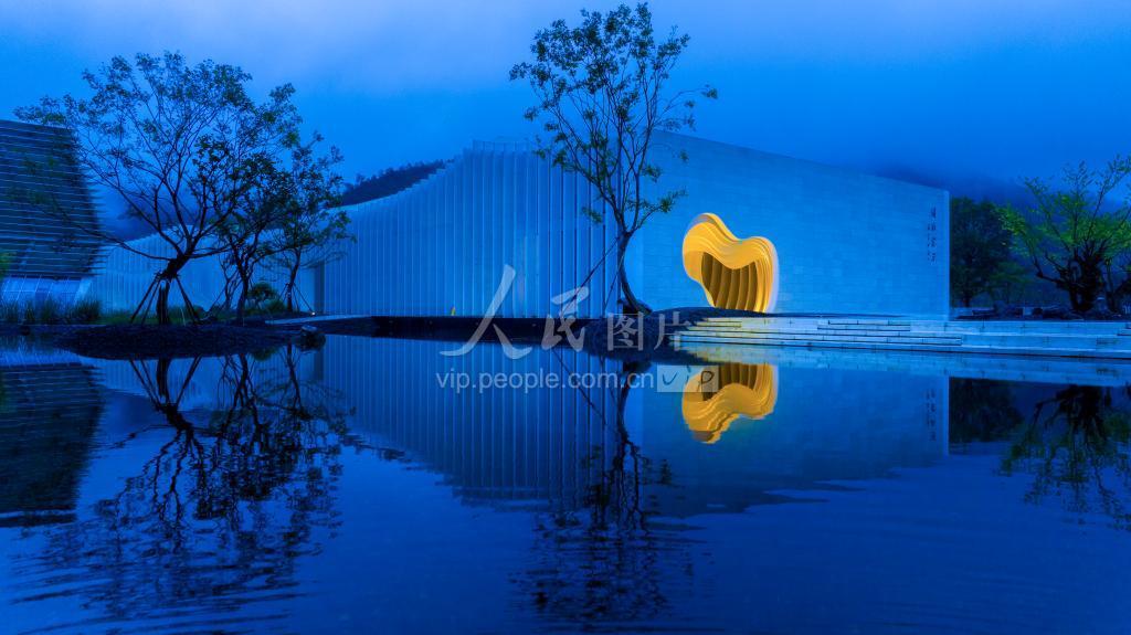 2023年10月16日,夜幕下的安徽泾县中国宣纸小镇建筑。