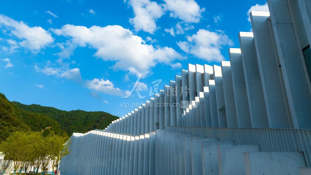 2023年10月16日,安徽泾县中国宣纸小镇建筑,它犹如一座宣纸山,人们仿佛走进了一幅立体山水图卷。