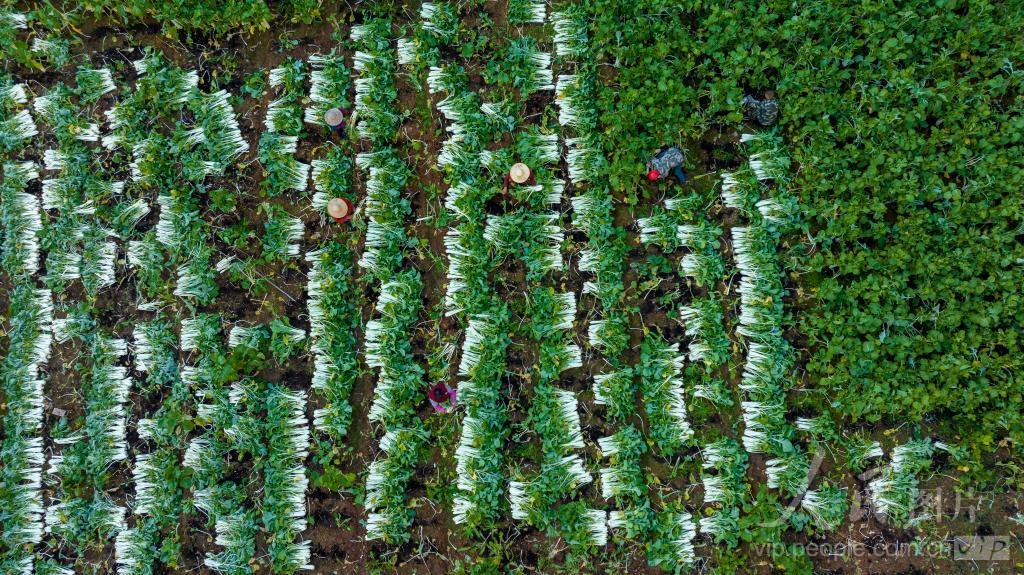 2023年11月19日,浙江省金华市经济开发区汤溪镇厚大村的高山高脚白菜种植基地农户正忙着收割采摘高脚白菜。