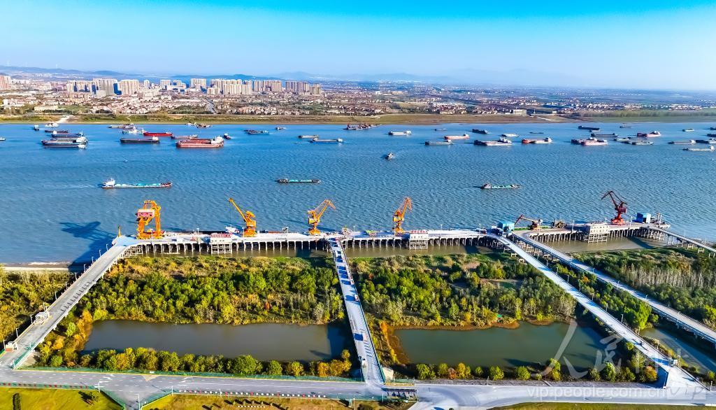 2023年11月24日,江西省瑞昌市码头镇,航拍九江港瑞昌港区,船舶、车辆和岸吊正在进行装卸作业。 江西九江港口岸扩大开放瑞昌港区日前通过国家验收,此次验收,既完善了瑞昌港区的开放功能,也为港区乃至全省及周边外贸货物的直进直出提供了口岸服务,有效扩大九江口岸辐射范围。