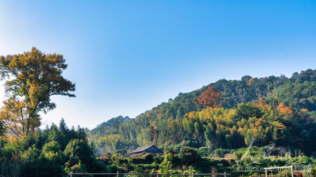 2023年11月28日,湖南省怀化市靖州苗族侗族自治县岩脚侗寨层林尽染,冬景如画。