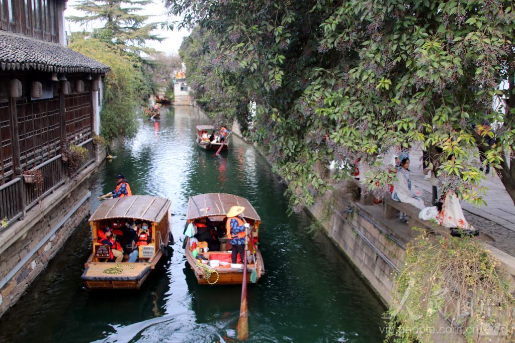 2024年1月16日,江苏苏州迎来冬日暖阳,气温明显回升,颇具特色的江苏苏州平江路水巷“水上游”特色项目深受青睐,游客乘坐手摇小木船水巷观光,在船工的吴歌声中饱览姑苏“小桥、流水、人家”美景,别有一番意境。