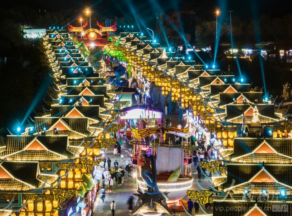 2024年1月19日晚,在广西壮族自治区南宁市五象新区“南宁之夜”街区,市民和游客们正在逛夜市、品美食、观表演,感受南宁城市夜经济的活力。