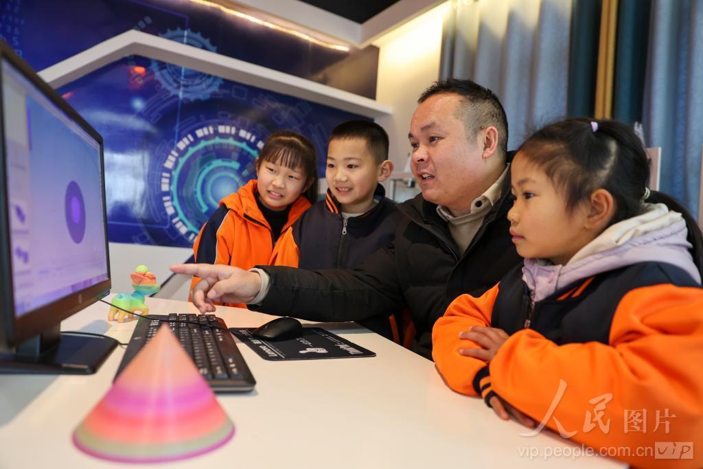 2024年2月28日,江西省瑞昌市铜城学校学生在3D打印实验室学习3D打印知识。 瑞昌市铜城学校通过开设特色科技课程,将3D打印设备引进校园,让学生们体验3D打印创作,动手动脑,享受科技带来的乐趣。