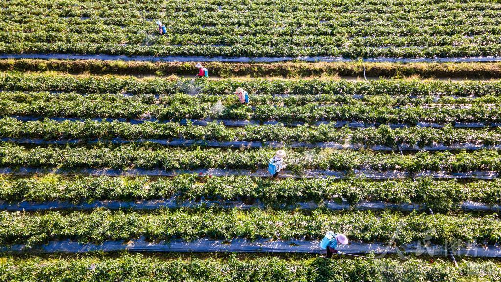 上传时间: 2024-03-04 18:28:56 图片说明: 2024年3月4日,海南省琼海市塔洋镇农民在田园里为辣椒施叶面肥。