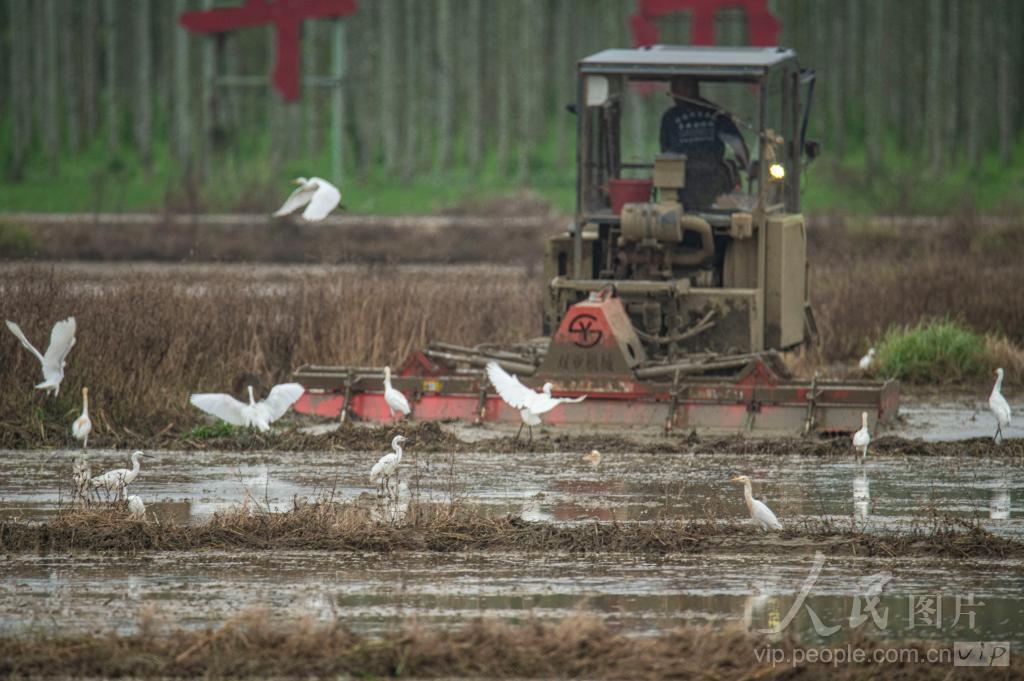近日,海南琼海迎来阵阵春雨,农民加紧进行春耕生产,田野里一派繁忙。白鹭也紧随耕作的农民捕捉惊动的昆虫,构成人与自然和谐相处的春日美景。