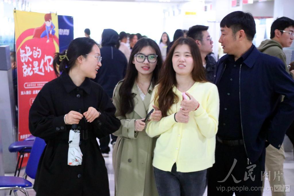 2024年4月12日,求职者在苏州市跨境电商人才专场招聘会寻找职位。