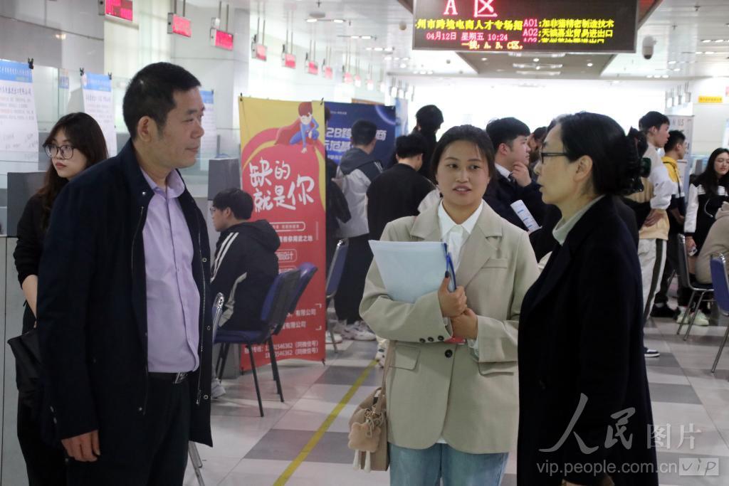 2024年4月12日,求职者在苏州市跨境电商人才专场招聘会寻找职位。