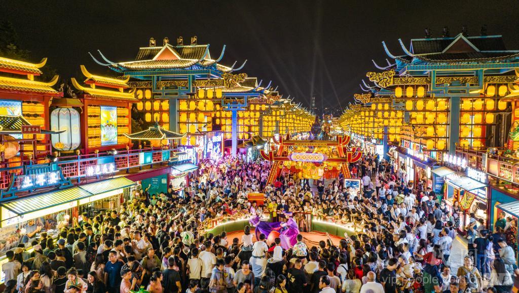 2024年5月1日,在广西南宁市良庆区五象新区“南宁之夜”街区,来自全国各地的游客正在逛夜市、品美食、观表演,感受南宁“夜经济”的火爆人气。
