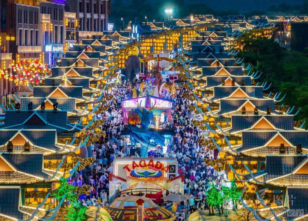 2024年5月1日,在广西南宁市良庆区五象新区“南宁之夜”街区,来自全国各地的游客正在逛夜市、品美食、观表演,感受南宁“夜经济”的火爆人气。