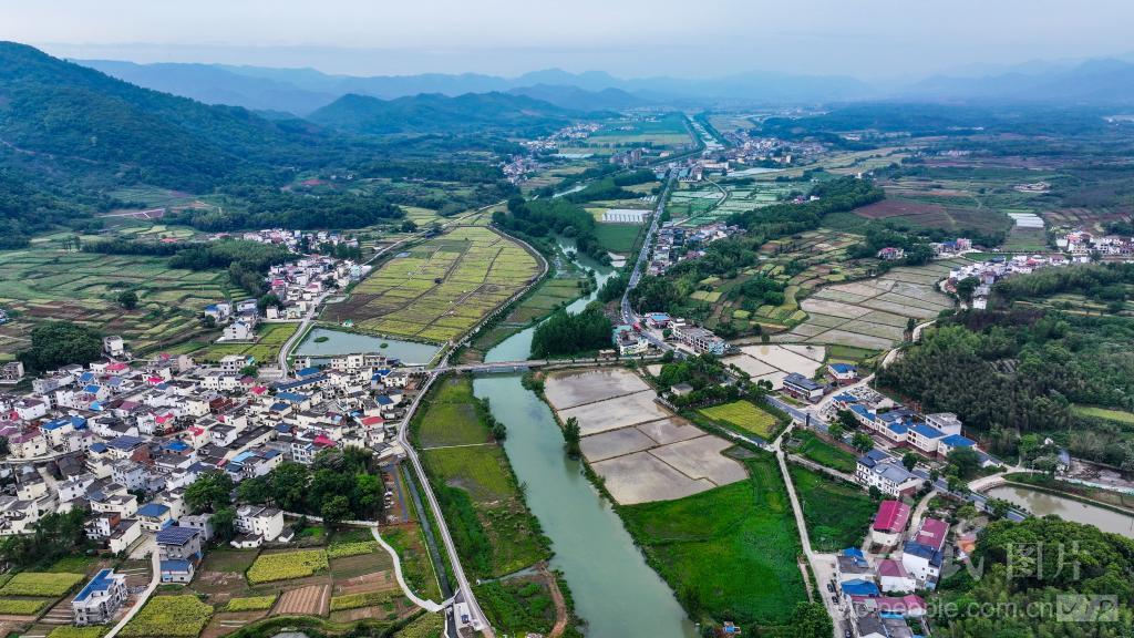 2024年5月2日,俯瞰江西省瑞昌市范镇,青山、绿树、田园及民居等相互映衬,构成一幅美丽的乡村田园画卷。 近年来,瑞昌市将生态环境与和美乡村建设有机结合,积极改善农村人居环境,发展现代农业产业,着力打造宜居宜游宜业乡村,不断绘就美丽乡村新画卷。