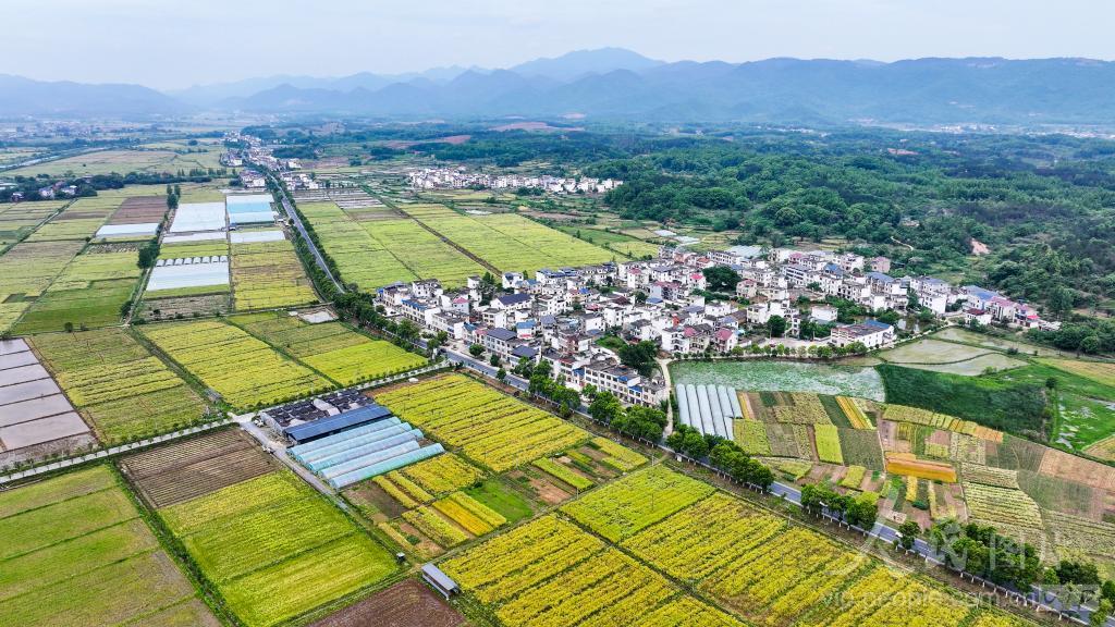 2024年5月2日,俯瞰江西省瑞昌市范镇,青山、绿树、田园及民居等相互映衬,构成一幅美丽的乡村田园画卷。 近年来,瑞昌市将生态环境与和美乡村建设有机结合,积极改善农村人居环境,发展现代农业产业,着力打造宜居宜游宜业乡村,不断绘就美丽乡村新画卷。