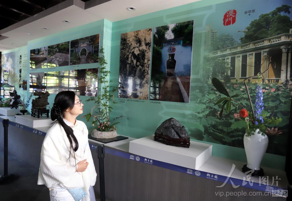 2024年5月28日,观众在澳门卢廉若公园与苏州狮子林联展上参观。