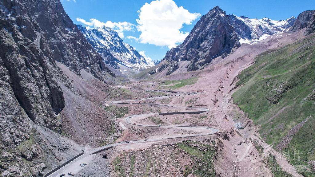 2024年6月1日,新疆独库公路,山路蜿蜒,车辆川流不息。