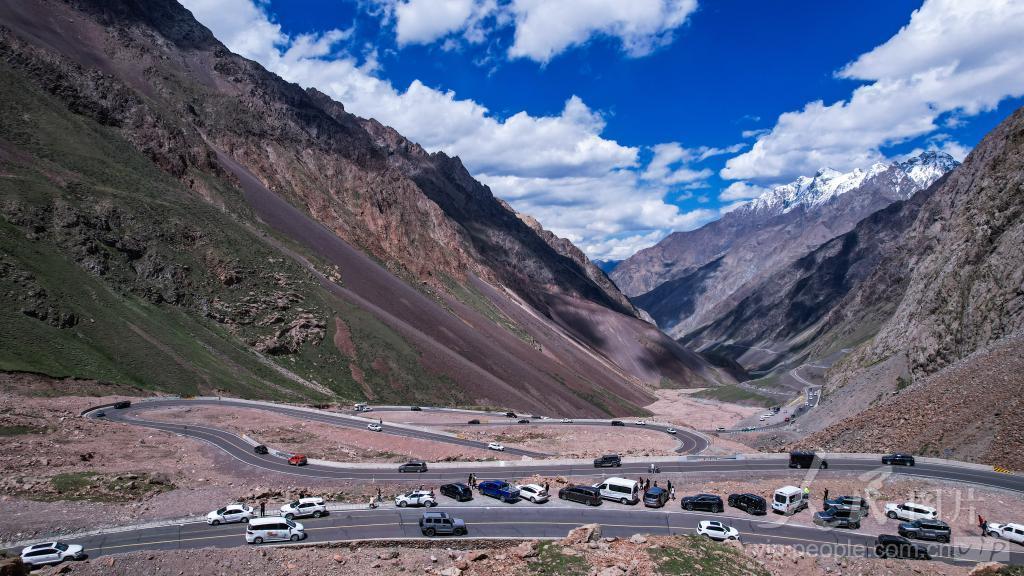 2024年6月1日,新疆独库公路,山路蜿蜒,车辆川流不息。